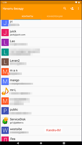 - Доступно для всех XMPP-провайдеров, однако Kandru используется по умолчанию.